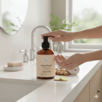 A gentle Hand Wash infused with botanical extracts, plant oil, and vitamin E that cleanses effectively while restoring moisture, soothing dryness, calming sensitivity, and protecting with antioxidants for soft, refreshed hands.