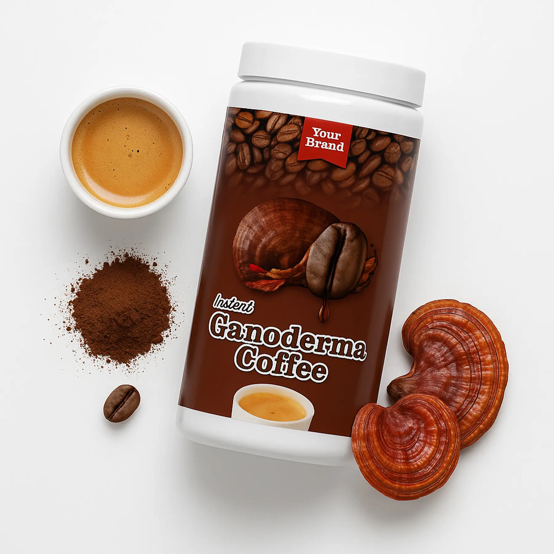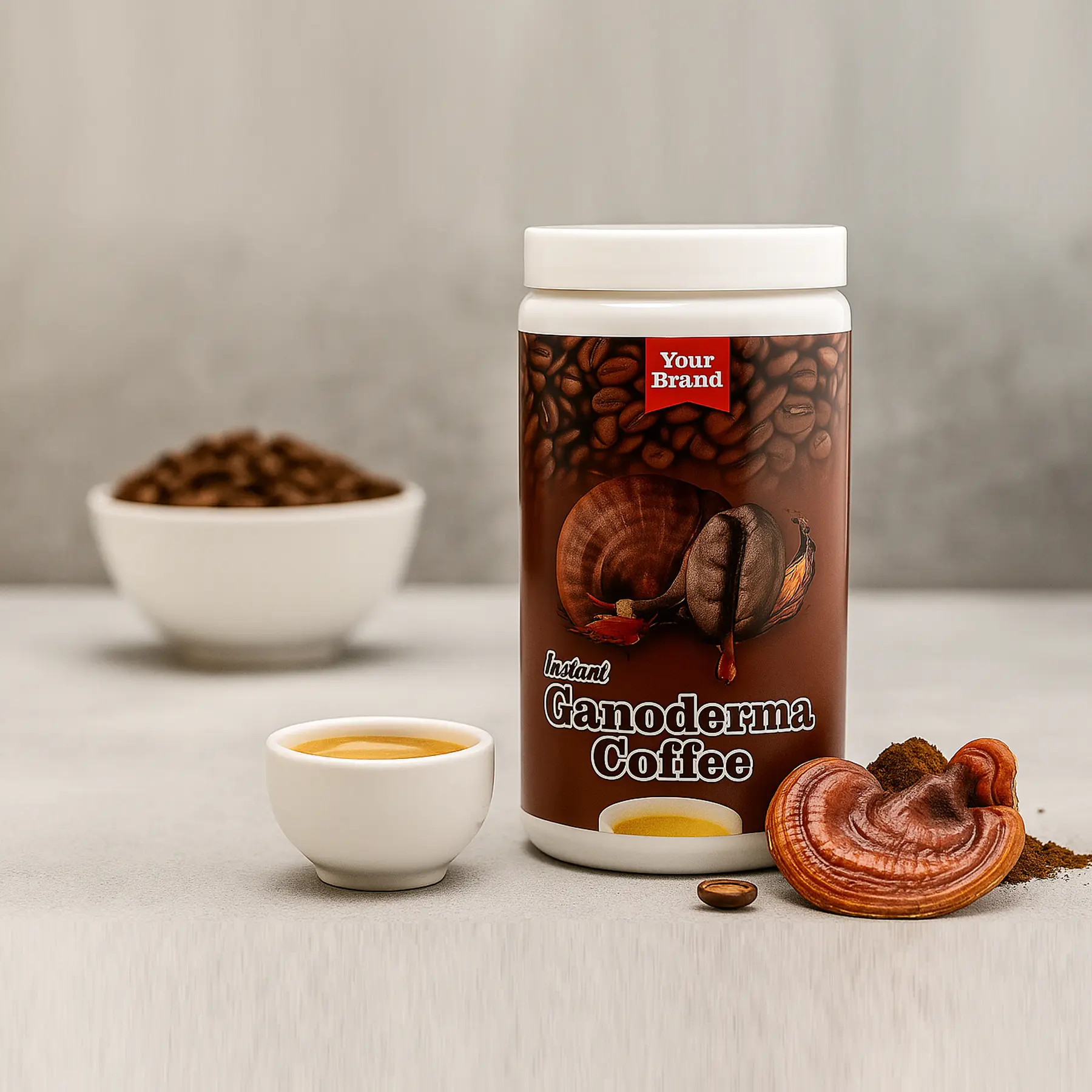 Instant Ganoderma Coffee blends roasted coffee with Ganoderma lucidum extract and creamer into a smooth, aromatic drink with a gentle herbal touch, offering quick preparation and a practical way to enjoy a distinctive beverage that unites classic coffee flavor with the natural essence of a traditional mushroom.