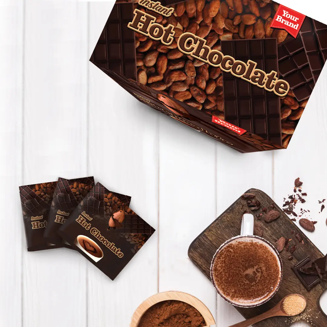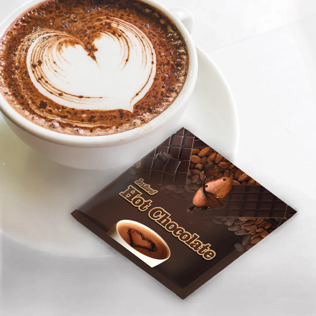 Instant Hot Chocolate blends premium cocoa, milk powder, soy protein, dietary fiber, calcium, magnesium, potassium, iron, zinc, B-vitamins, vitamin D, and natural antioxidants to create a creamy, chocolatey drink that boosts energy, uplifts mood, and provides comforting daily nourishment in a convenient cup.