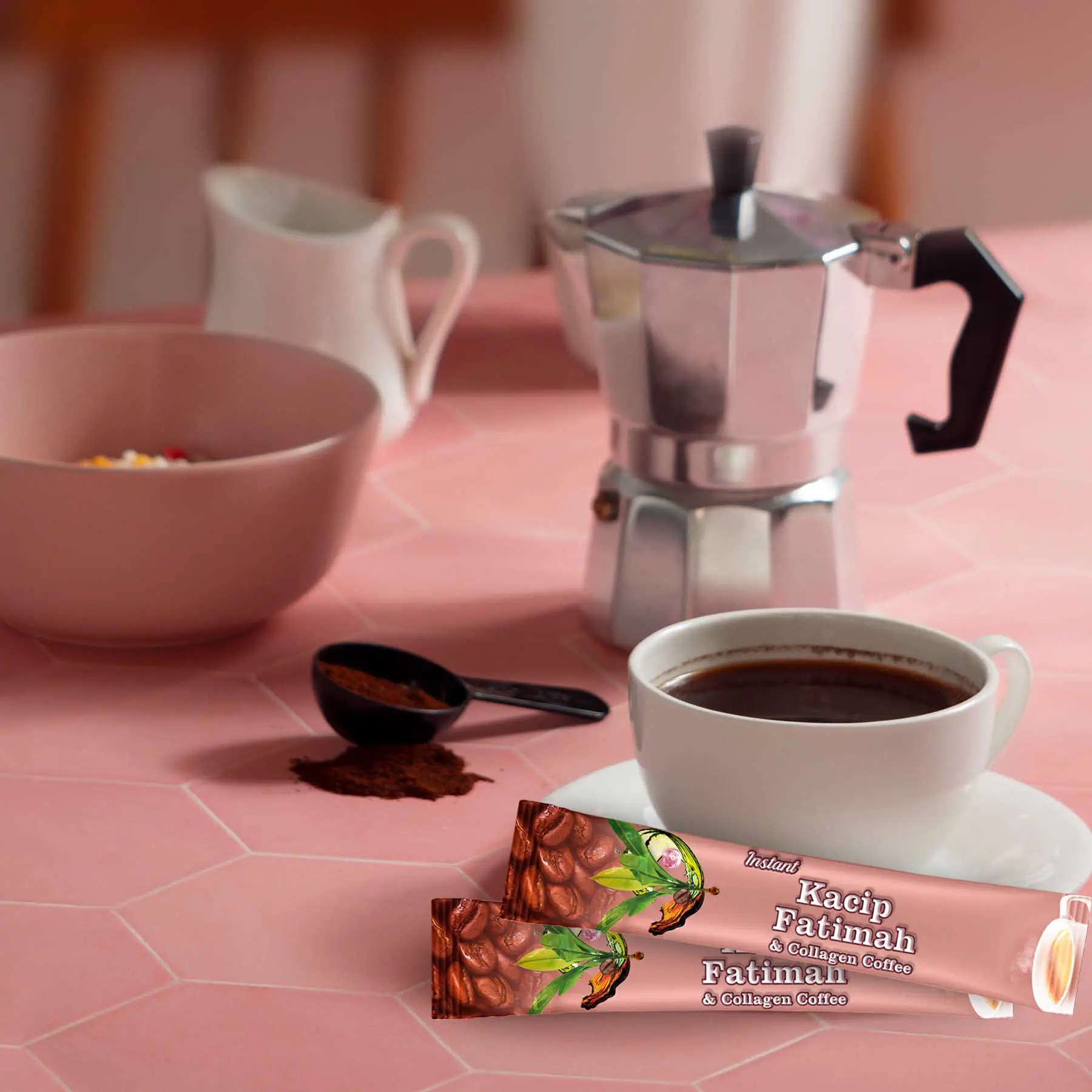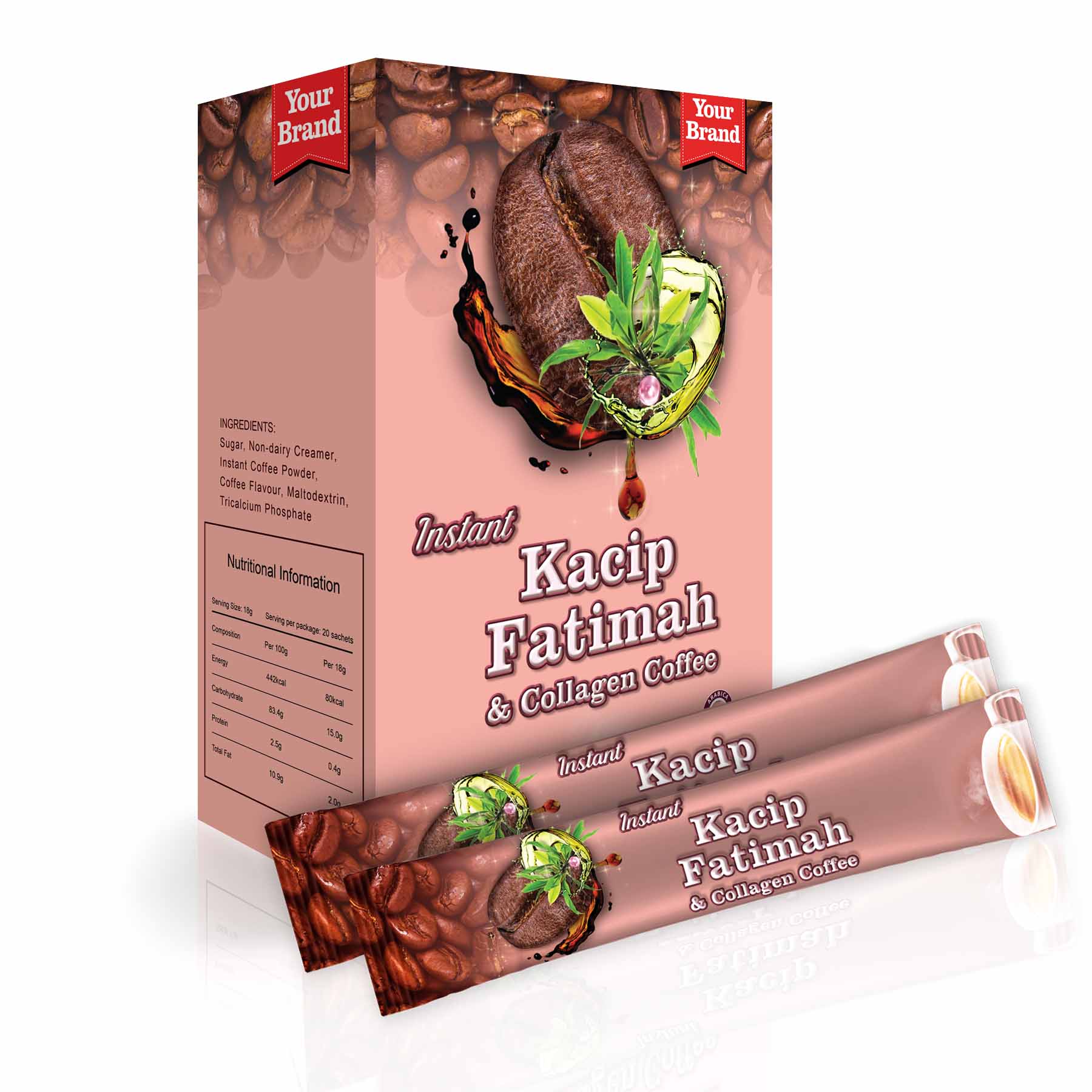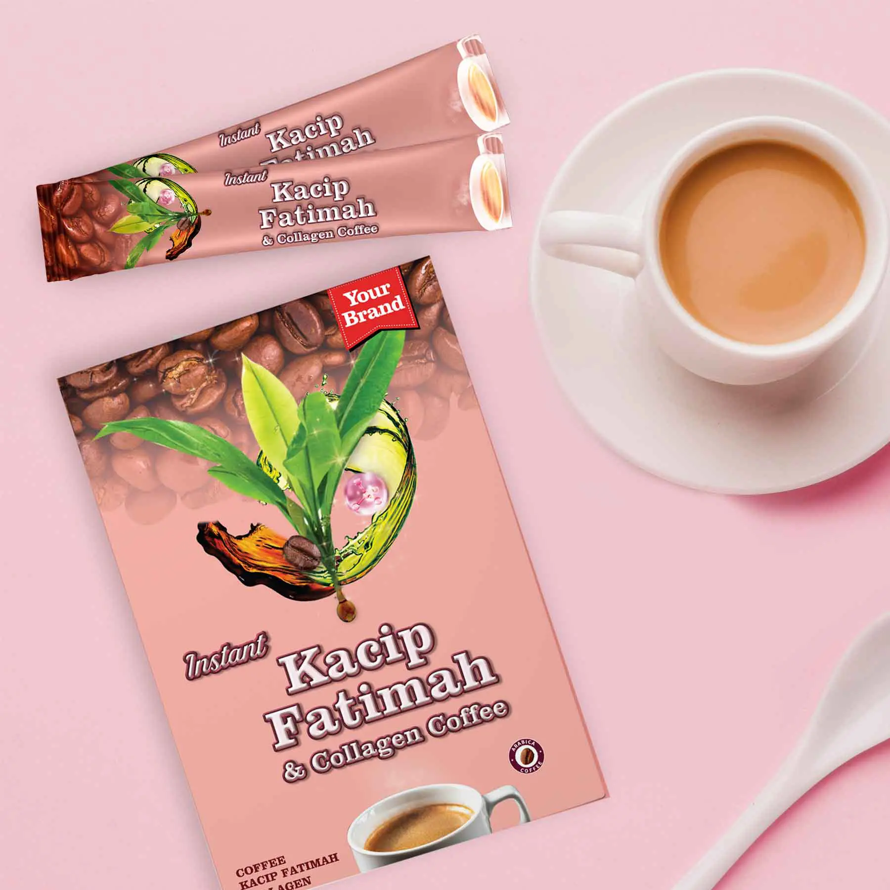 Kacip Fatimah & Collagen Coffee combines premium Arabica/ Robusta beans, kacip fatimah extract, marine collagen, dietary fiber, calcium, vitamins & natural antioxidants to create a smooth, aromatic cup that supports women’s wellness, balances hormones, promotes skin elasticity, boosts energy & enhances overall vitality in one convenient drink.