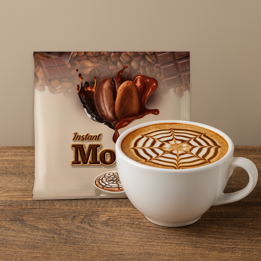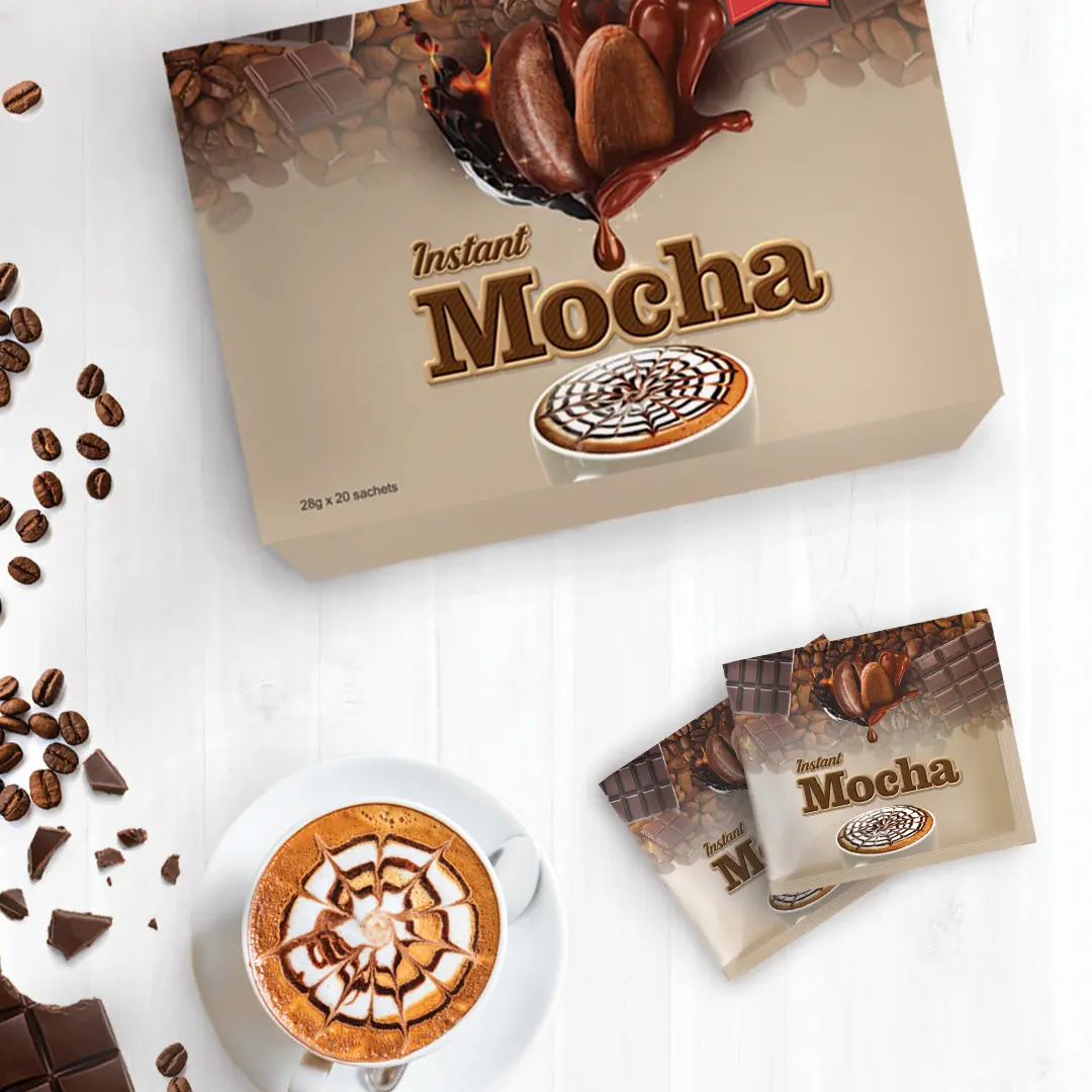 Mocha is a rich blend of premium Arabica/ Robusta coffee, cocoa, milk powder, dietary fiber & natural antioxidants, offering a smooth chocolatey taste that supports energy, enhances focus, aids digestion, provides essential nutrients, and delivers a comforting boost of vitality in every cup.