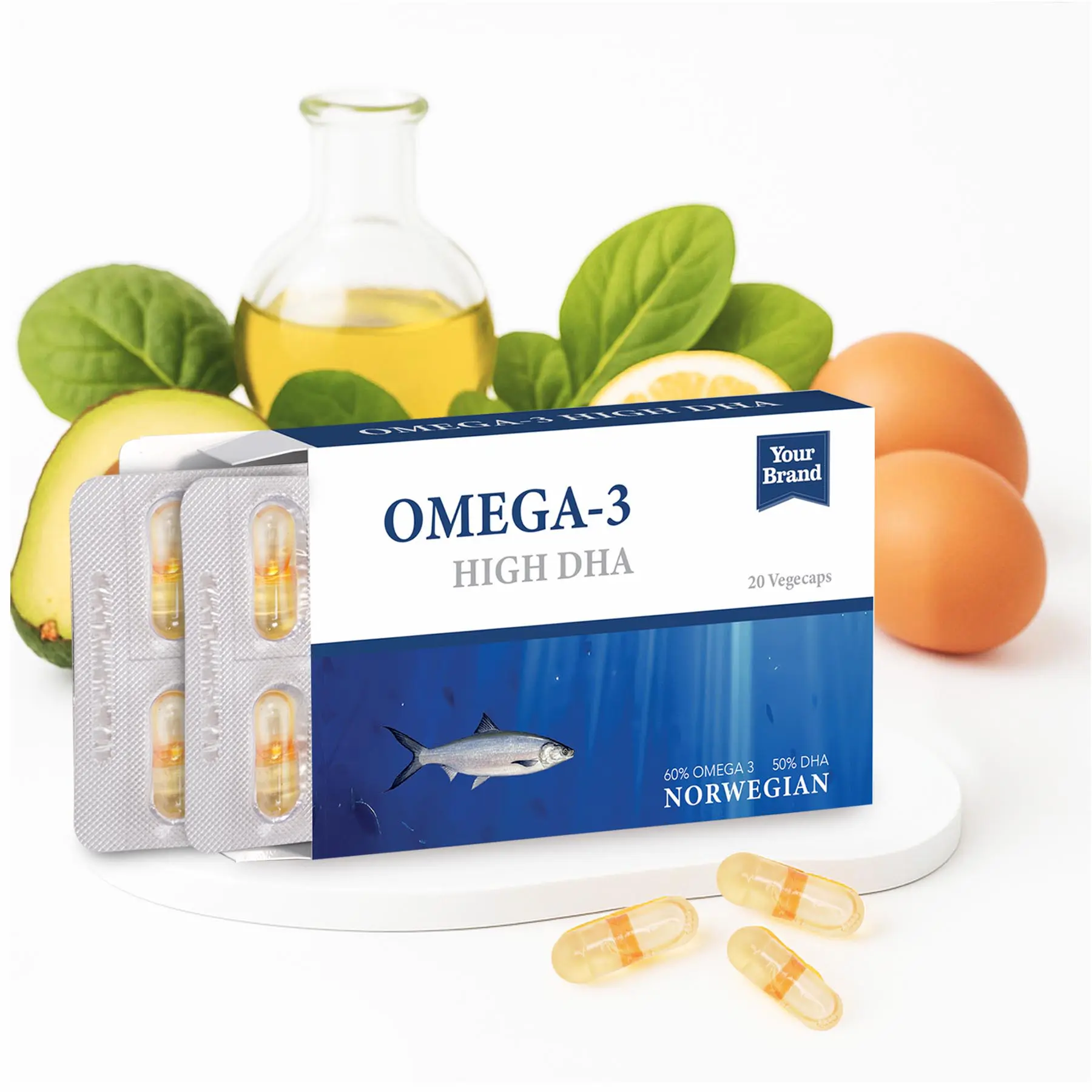 High in DHA to support brain, eye, and cognitive health with balanced EPA DHA for overall wellness, this Omega-3 Fish Oil is encapsulated in Halal-certified water-soluble vege-capsules using nitrogen flushing and Japanese capsule banding technology to prevent oxidation, preserve nutrient quality & extend shelf life for global distribution.