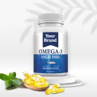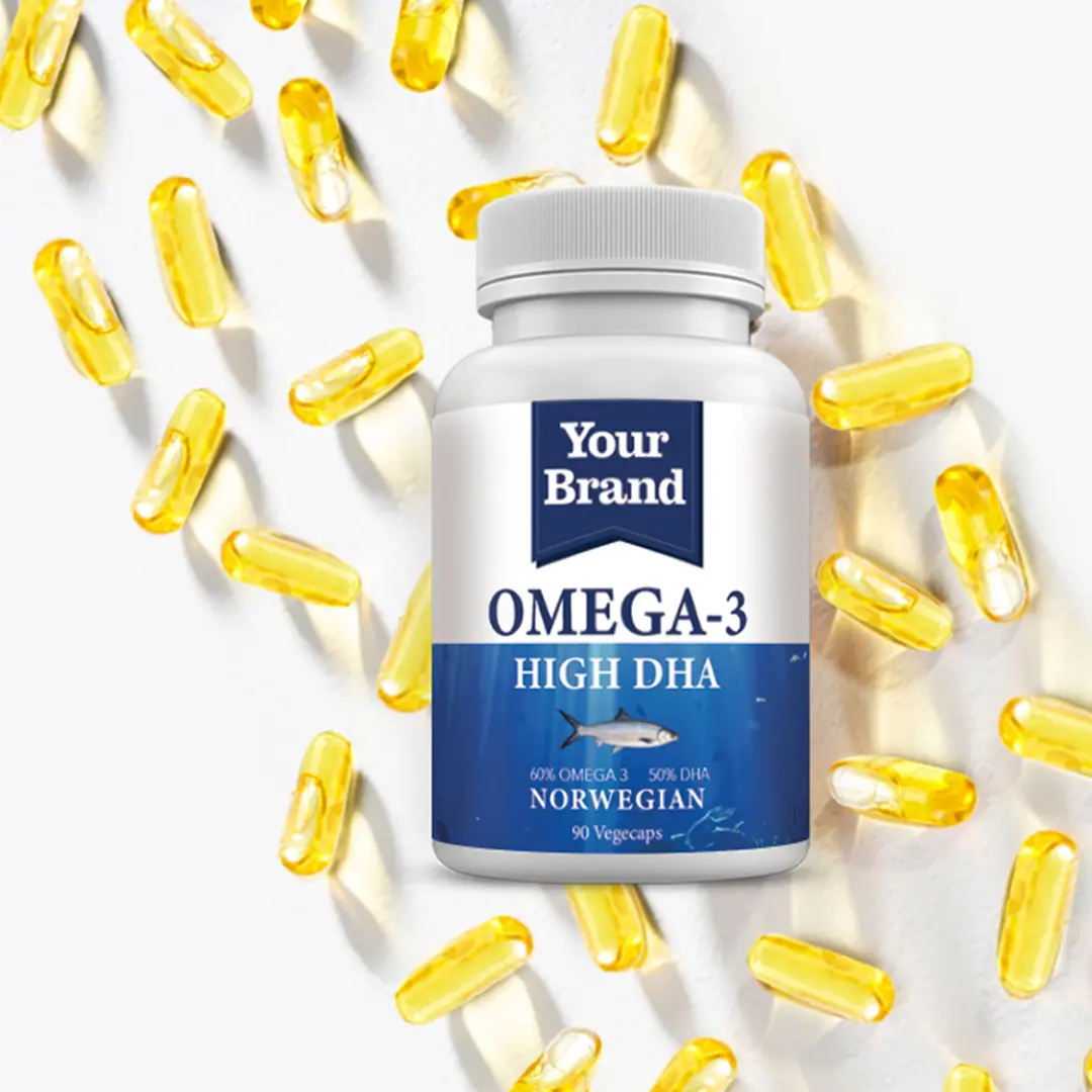 High DHA Omega-3 Fish Oil hardgel capsule deliver key fatty acids for brain, eye, and heart health, with EPA for balance. Encapsulated in Halal-certified vege-capsules using nitrogen flushing and Japanese banding technology, they resist oxidation to preserve potency and ensure long-lasting quality.